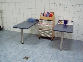 Materialgleiche passende Mal- und Spieltische.